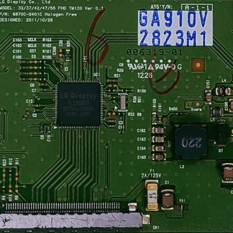Based on the provided image, this is an LG Display Co., Ltd. T-Con (Timing Controller) Board for LCD/LED televisions.
