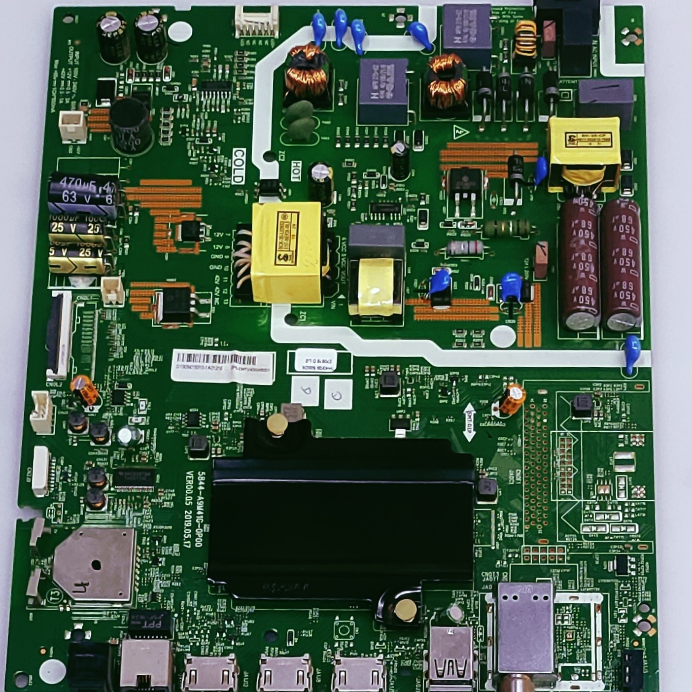 Functionality: It manages the TV's 4K Ultra HD resolution (3840x2160) at a 60 Hz refresh rate, connectivity via two HDMI and two USB ports, and built-in smart TV features like Wi-Fi, Miracast, Netflix, Amazon Prime, and YouTube.