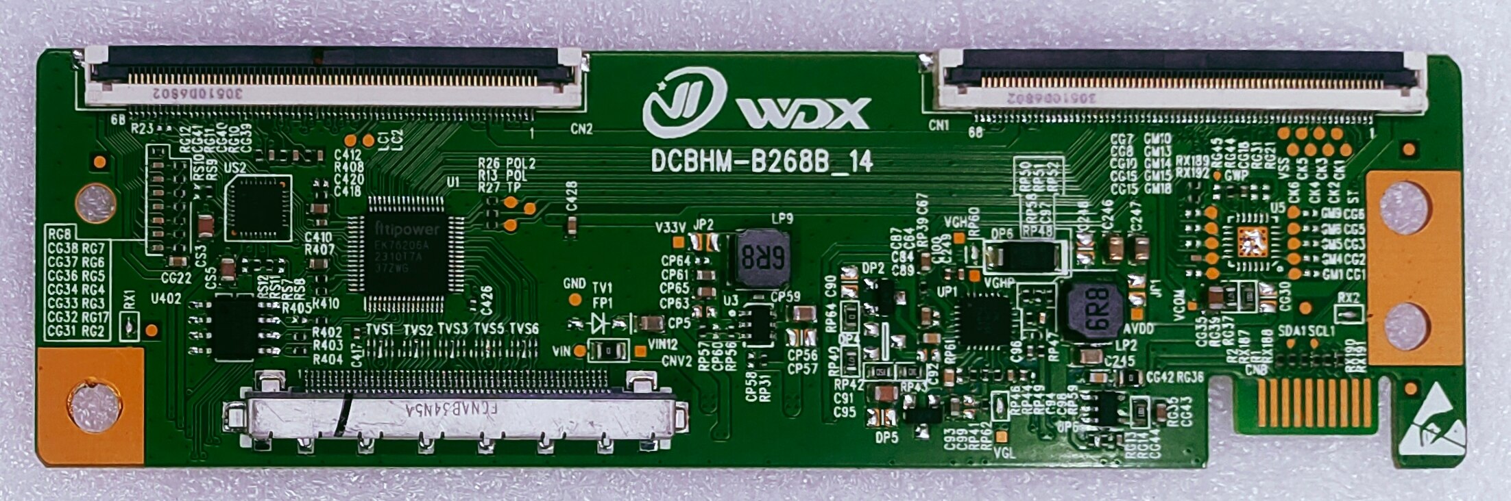 DCBHM-B268B_14 LED TV FHD TCON 43" BOE PANEL HV430FHB-F90 Digital Electronics Services pune maharashtra 9850791757 9763720390 (All India (COD) Cash on Delivery Service Available This is a T-con board (timing control board) for an LED or LCD television. It converts video signals from the main board into precise electrical timing signals for the display's pixels. The board is identified by the part number DCBHM-B268B_14. It is used in high-definition display applications for TVs and monitors. Replacing this board can fix problems such as a black or blurry screen.