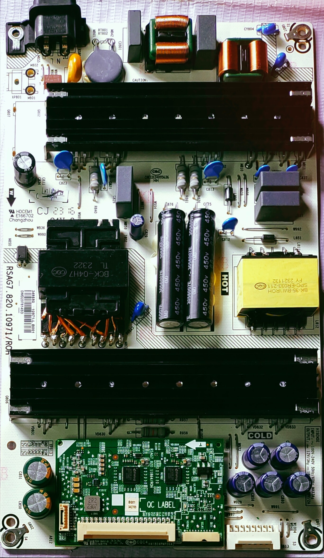 HISENSE POWER SUPPLY BOARD MODEL NUMBER 55UBK The image displays a power supply board, specifically identified as a Hisense power supply board with the model number RSAG7.820.10971/R0H. Function: Power supply boards are crucial components in electronic devices like televisions, responsible for converting incoming AC power into the various DC voltages required to operate the device's internal components, such as the main board and LED backlights. Components: This board features various electronic components like capacitors, transformers, and integrated circuits, which work together to regulate and distribute power. Safety: Power supply boards are designed with safety features to prevent overloads and ensure proper voltage delivery to protect the device. Isolation: The output of power supplies, especially those connected to mains electricity, is isolated to prevent dangerous electrical shocks.