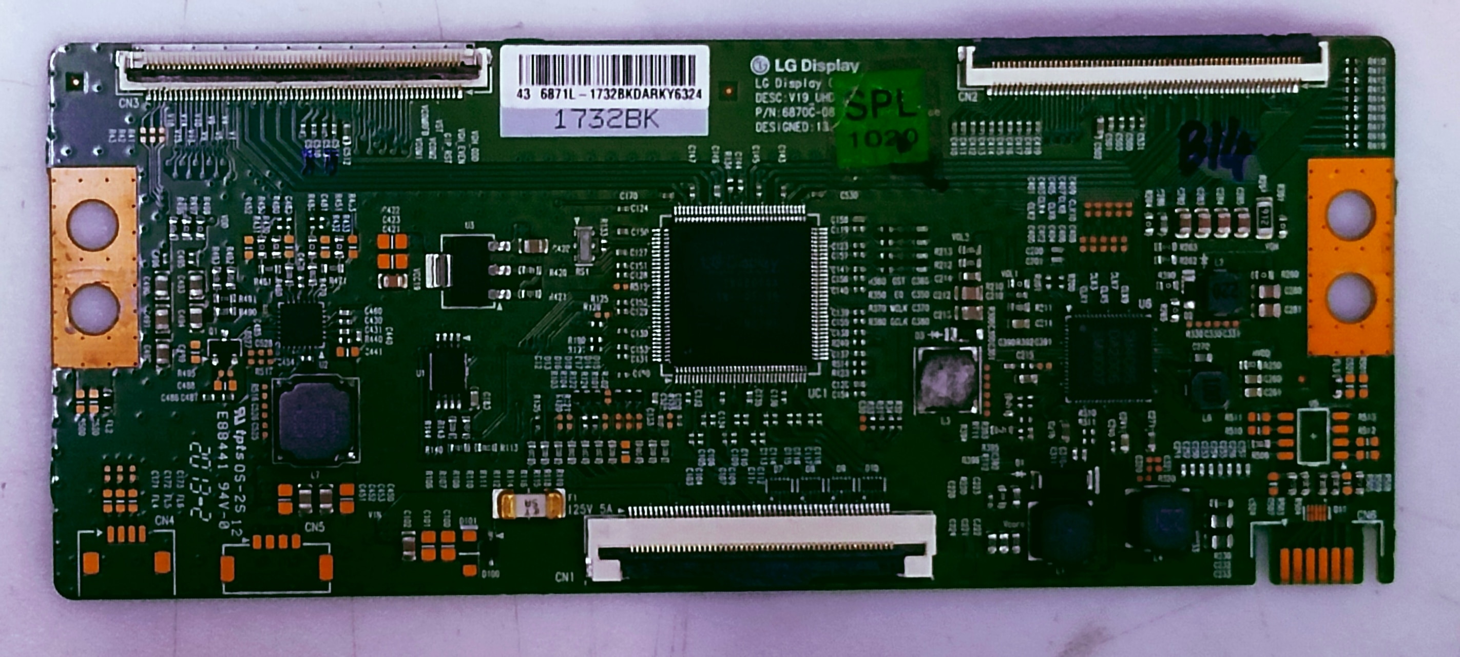 LG Led Tv 4k T-con Model No. 43 6871L-1732BKDARKY6324 P/N. 6870C-0805A Digital Electronics Services pune maharashtra 9850791757 9763720390 (All India (COD) Cash on Delivery Service Available) Based on the visual identification of the board, this is an LG Display T-Con board, specifically model 6870C-0805A. This timing controller (T-Con) board is used to manage the data flow to the LCD panel for proper image display. Key Specifications & Information Part Number (P/N): 6870C-0805A Manufacturer: LG Display Compatibility: This board is compatible with various 4K LED TV models, including those from brands like VU (e.g., 43CA) and Philips (e.g., 43PUS6504/12). Function: It is responsible for fixing issues such as a flickering screen, distorted colors, or a completely black screen. Replacement Guidance If you are replacing this board, please note the following safety precautions: Disconnect Power: Ensure the TV is completely unplugged from any power source before attempting to remove or install the board. Static Protection: Use anti-static gloves to prevent electrostatic discharge (ESD) damage to the sensitive components. Verify Model: Double-check the part number 6870C-0805A on your original board to ensure a match.