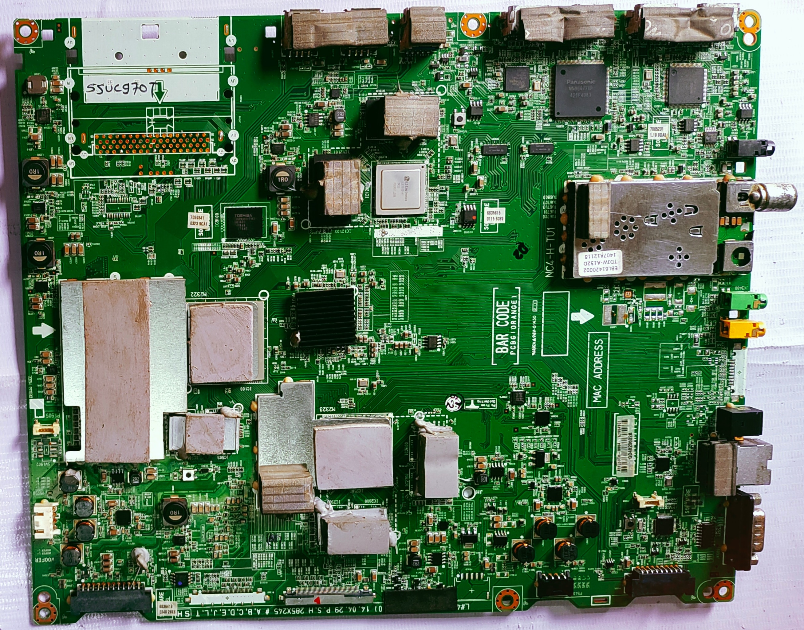 LG 4K ANDROID MOTHER BOARD MODEL NUMBER 55UC970T The LG 55UC970T main board, also known as the main PCB, is identified by the part number EBU62925601. It is a key component responsible for processing TV signals and ensuring a stable, clear picture. The board also handles audio decoding and amplification, and supports various smart connectivity options. Key Features and Functions: Signal Processing: Receives and processes various TV signals, including digital and analog, to produce a stable and clear picture. Image Optimization: The image processor enhances contrast, color saturation, and clarity for a better viewing experience. Audio Processing: Decodes and amplifies audio signals to deliver high-quality sound. Smart Connectivity: Supports multiple connection methods like HDMI, USB, and Wi-Fi for connecting external devices. Multi-screen Interaction: Enables interaction with mobile devices and tablets, allowing for screen projection and content sharing. Relevant Part Numbers: EBU62925601: Main PCB part number for the LG 55UC970T. EAX66104204: PCB Number associated with the main board. EAY63368701: Power board part number for 55UC970T and 65UC970T. 6870C-0524A: T-con board part number. 6871L-3918B: T-con board part number. Additional Information: The main board is a critical component for the overall functionality of the TV. A faulty main board can lead to various issues, including picture problems, audio issues, and connectivity problems. When replacing the main board, it's recommended to consult with a qualified technician to ensure proper diagnosis and installation.