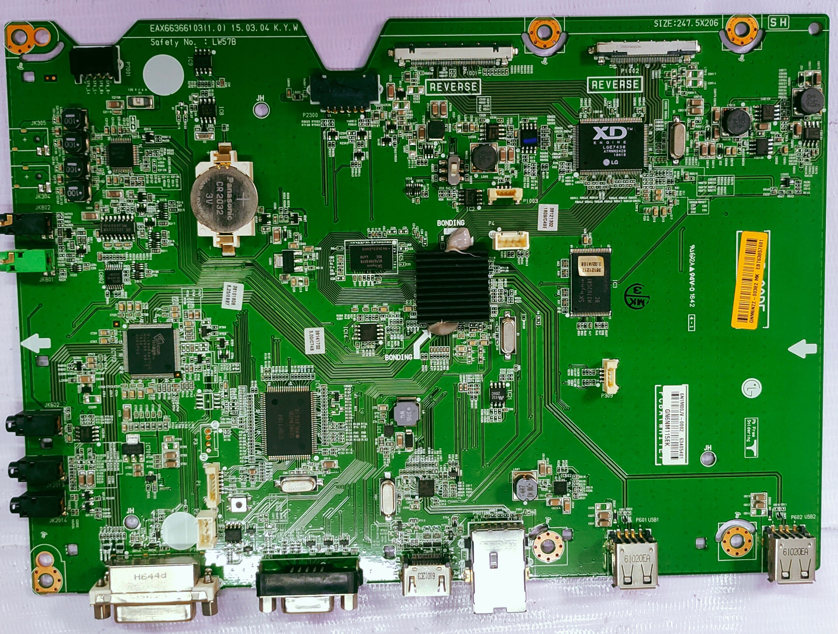LG 4k SMART MOTHER BOARD MODEL NUMBER 65SE3KB-B The LG 65SE3KB-B is a 65-inch Full HD (1920 x 1080) Edge-Lit LED Digital Signage Display with an IPS panel. Key Features and Specifications: Display Type: Commercial-grade digital signage display. Panel Technology: IPS panel with a native resolution of 1920 x 1080 (Full HD). Brightness: 400cd/m². Connectivity: Includes HDMI, USB, DVI, RS232C, and RJ45 ports. Usage: Designed for digital signage applications and capable of 18 hours/day operation. Components: The image displays a main board, which is a key component of such a display, with part numbers like EAX66384803 and EBT63616302 visible in the search result context. Physical Dimensions: Approximately 57.36 x 2.22 x 32.99 inches.