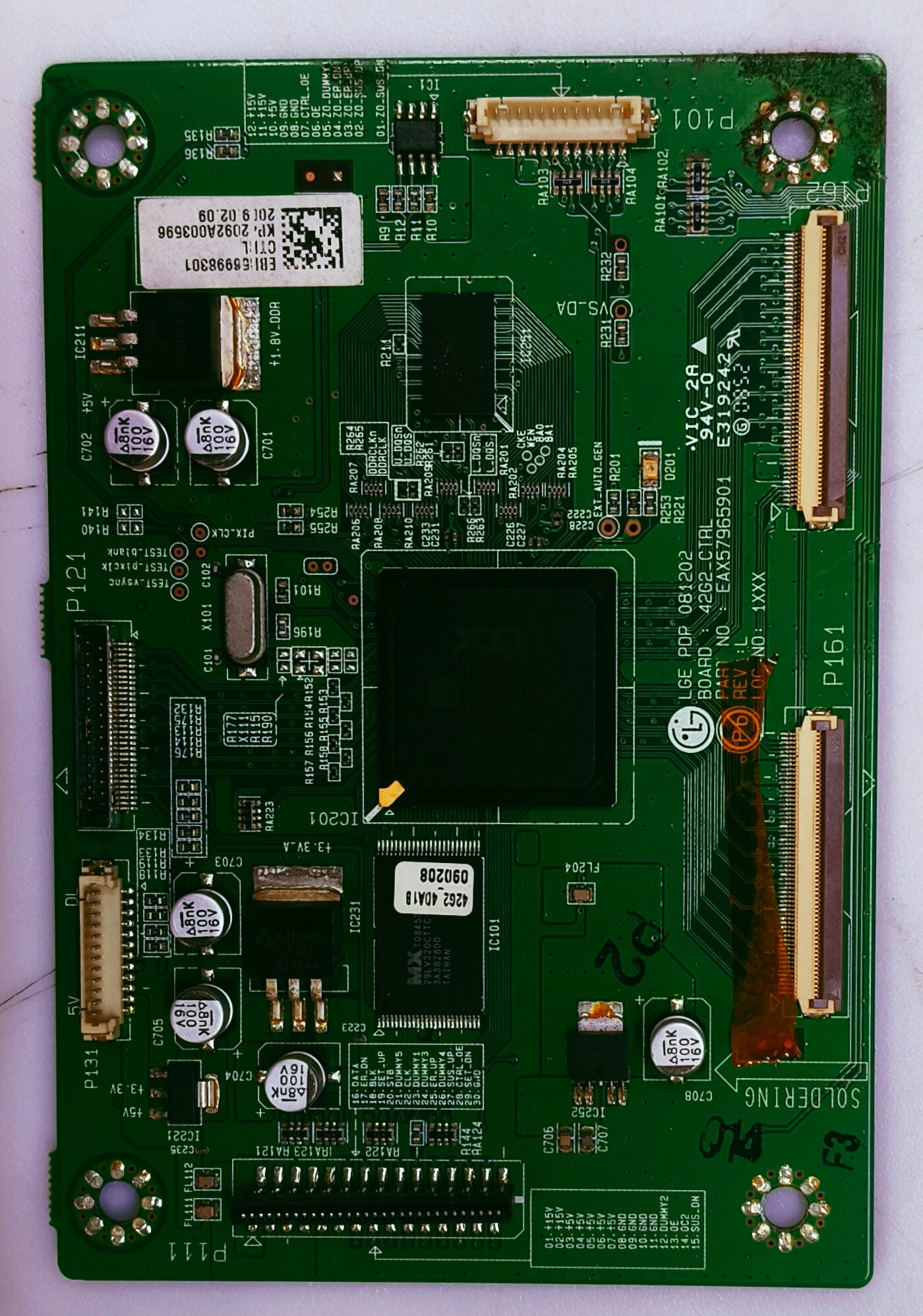 LG Plazma Logic Model No 42PQ60R Part No. EBI 56998301 Ctrl Digital Electronics services Near sudarshan chowak Lane no 06 Pimpale gurav Pune - 411061 Mob.9850791757 This image displays an LG T-Con Board, model number EAX57965901, which is also identified by the part number EBR56998301. Product Details Compatibility: This board is designed for use in specific LG television models, such as the 42PQ30R. Function: T-Con (Timing Controller) boards are essential components in LCD and plasma televisions, managing the timing and distribution of signals to the display panel. Specifications: Usage: LCD/LED televisions. Size: Generally compatible with panels ranging from 26 to 65 inches.