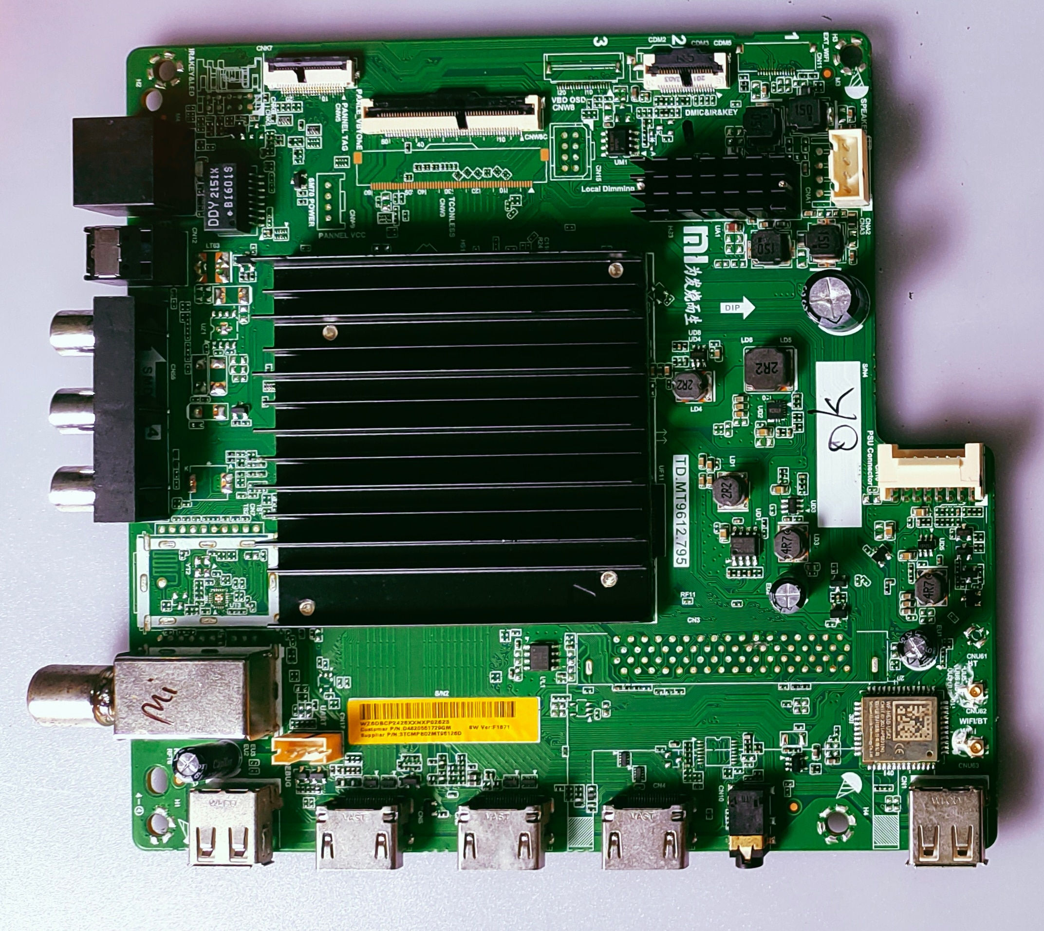 MI 4K ANDROID MOTHER BOARD MODEL NUMBER L50M6-ES The L50M6-ES main board is the central processing unit for the Xiaomi Mi TV 5X 50-inch model, handling various functions like picture processing, audio output, and smart TV operations. It features a 64-bit Quad Core A55 processor, HDMI 2.1 ports, and support for eARC and ALLM. This board is an integral part of the TV's functionality and ensures a smooth and premium entertainment experience. Here's a more detailed breakdown: Function: The L50M6-ES main board acts as the core of the TV, processing signals, managing the operating system (likely Android TV), and facilitating communication between different components. Hardware: It incorporates a 64-bit Quad Core A55 processor, providing the processing power for various tasks, including running apps, decoding video, and handling user inputs. Connectivity: The board features HDMI 2.1 ports, enabling support for features like Auto Low Latency Mode (ALLM) and Enhanced Audio Return Channel (eARC) for a seamless gaming and audio experience. Compatibility: It is specifically designed for the Xiaomi Mi TV 5X 50-inch model and may not be compatible with other TV models. Importance: The main board is crucial for the overall performance and functionality of the TV. A faulty main board can lead to various issues, including picture problems, audio issues, or complete failure of the TV. Replacement: If the main board needs replacement, it's essential to ensure the replacement is an original OEM part specifically designed for the L50M6-ES model.