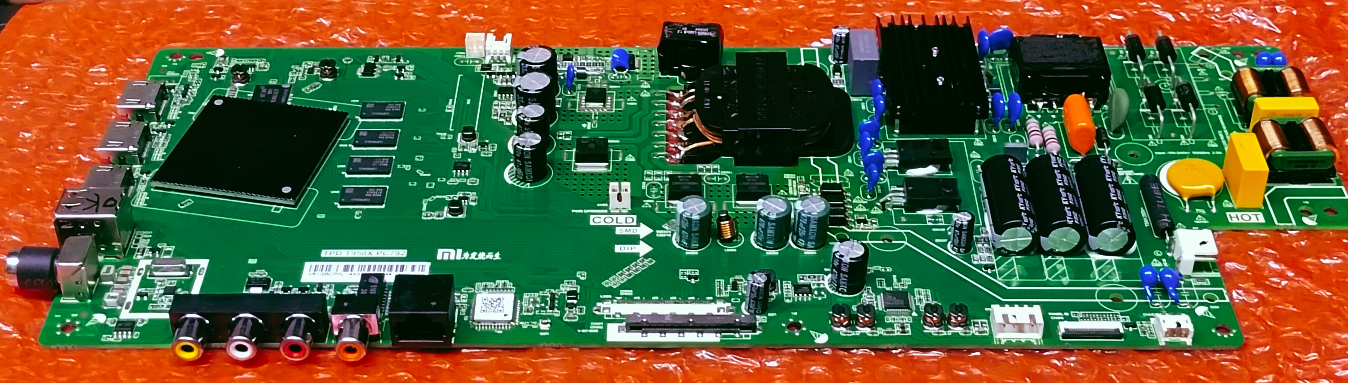 ThThe Mi 4K L50M5-5AIN, also known as the Mi TV 4X 50-inch, is a 4K Ultra HD LED smart Android TV. It features a 50-inch display with a resolution of 3840 x 2160 pixels and a 60Hz refresh rate. The TV has 20W of speaker output with Dolby and DTS-HD support. It runs on Android TV 9.0 and includes built-in Wi-Fi, PatchWall, Netflix, Prime Video, Disney+Hotstar, and Google Assistant. Key specifications and features: Display: 50-inch LED panel with 4K Ultra HD resolution (3840 x 2160) and 60Hz refresh rate. HDR: Supports 4K HDR 10-bit display. Audio: 20W speaker output with Dolby and DTS-HD support. Smart Features: Android TV 9.0, Built-in Wi-Fi, PatchWall, Netflix, Prime Video, Disney+Hotstar, Google Assistant. Connectivity: 3 HDMI ports, 2 USB ports. Viewing Angle: 178°. Operating System: Android. Processor: The TV utilizes a processor to interpret commands. RAM and Storage: The TV has 2 GB of RAM and 8 GB of internal storage. Content: PatchWall provides access to a vast library of 4K content. Data Saver: Features a data saver mode. Immersive Viewing: Designed for an immersive viewing experience. e image displays a motherboard for a Mi LED TV, specifically identified as compatible with Model L50M5- This is an original Mi OEM motherboard, thoroughly tested for flawless performance. It is designed to ensure the TV's display quality remains consistent and that sensor navigation and auto functions operate smoothly. The motherboard supports various functionalities, including seamless integration with streaming services like Netflix and YouTube, and connectivity options like HDMI and Bluetooth for gaming consoles or other devices. Using original parts like this motherboard can help extend the life and reliability of the display panel and ensure the TV's functionality and services operate like factory default. Mode