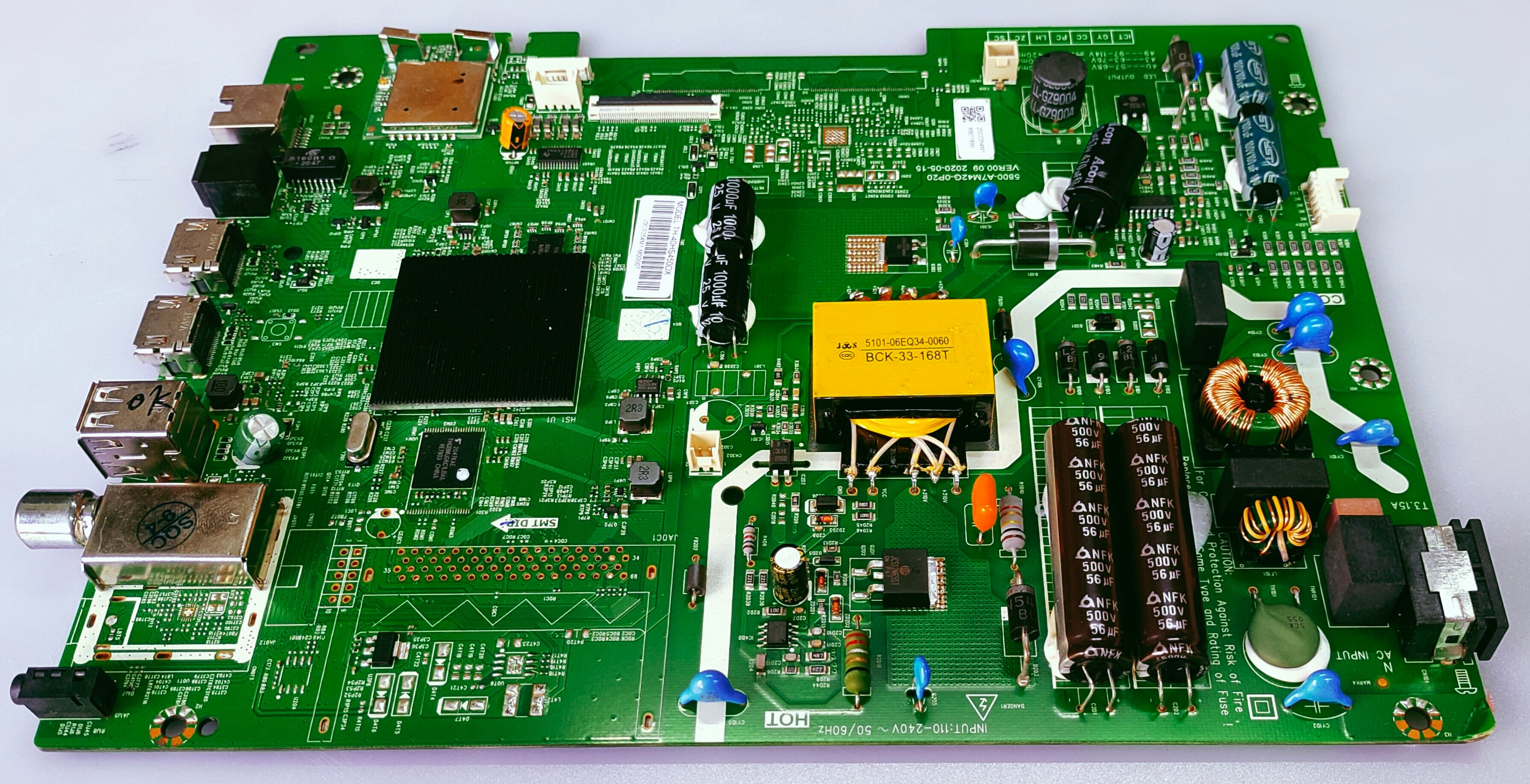 The TH-40HS450DX Panasonic main board is an original replacement motherboard for the Panasonic 40-inch LED Smart Android TV, model TH-40HS450DX, featuring an Android operating system with access to apps like Netflix, Disney+Hotstar, and YouTube. Key specifications of the TV that the main board supports include a Full HD resolution, 1GB of RAM, 8GB of internal storage, 16W sound output, and built-in Wi-Fi and Google Assistant. Key Details: Product: Motherboard / Main Board TV Model Compatibility: Panasonic TH-40HS450DX Operating System: Android OS TV Features Supported: Full HD (FHD) resolution 1GB RAM 8GB internal storage 16W sound output Built-in Wi-Fi and Google Assistant Support for streaming apps like Netflix, Disney+Hotstar, and YouTube