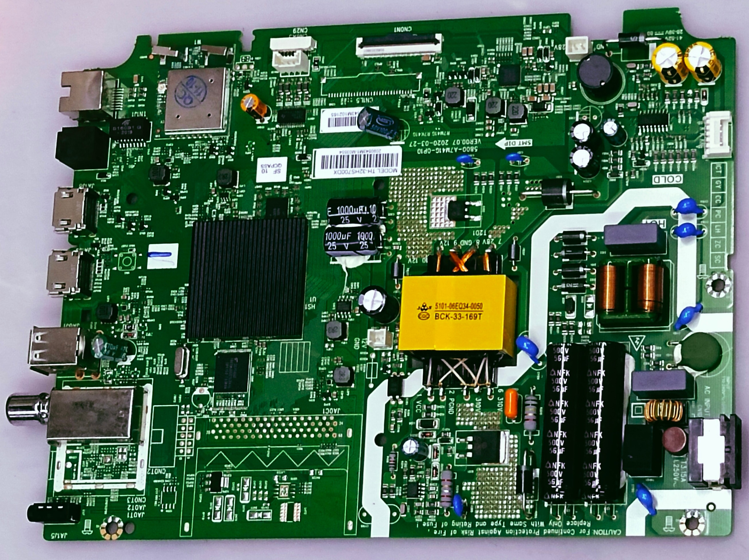 PANASONIC LED TV New Android Mother Board Model Number TH-32HS700DX The Panasonic TH-32HS700DX main board is a component that serves as the "brain" of the TV, containing the audio and video inputs and outputs. While specific technical details about its design or the components on the board are not provided in the search results, it is described as a "smart LED TV motherboard" made from fiber board and is a genuine Panasonic product. It is available from various part suppliers, such as S S Traders and Androidfixcell.com, and is known to be compatible with other Panasonic models like the TH-32GS655DX, TH-32GS500DX, and TH-32HS580DX. What it is: Motherboard/Main Board: This is the primary circuit board that functions as the central processing unit for the TV, handling all functions from image processing to audio output. Component of TH-32HS700DX: It is specifically designed for the Panasonic TH-32HS700DX smart LED TV model. Key Characteristics: Genuine Panasonic Product: It is an authentic component from the Panasonic brand. Fiber Board Construction: The motherboard is made from fiber board material. Smart TV Functionality: As a smart TV motherboard, it supports the TV's smart features. Color: The specific board is described as having a green and yellow color. Where to Find It: Part Suppliers: You can find the main board through electronics part traders and suppliers in India, such