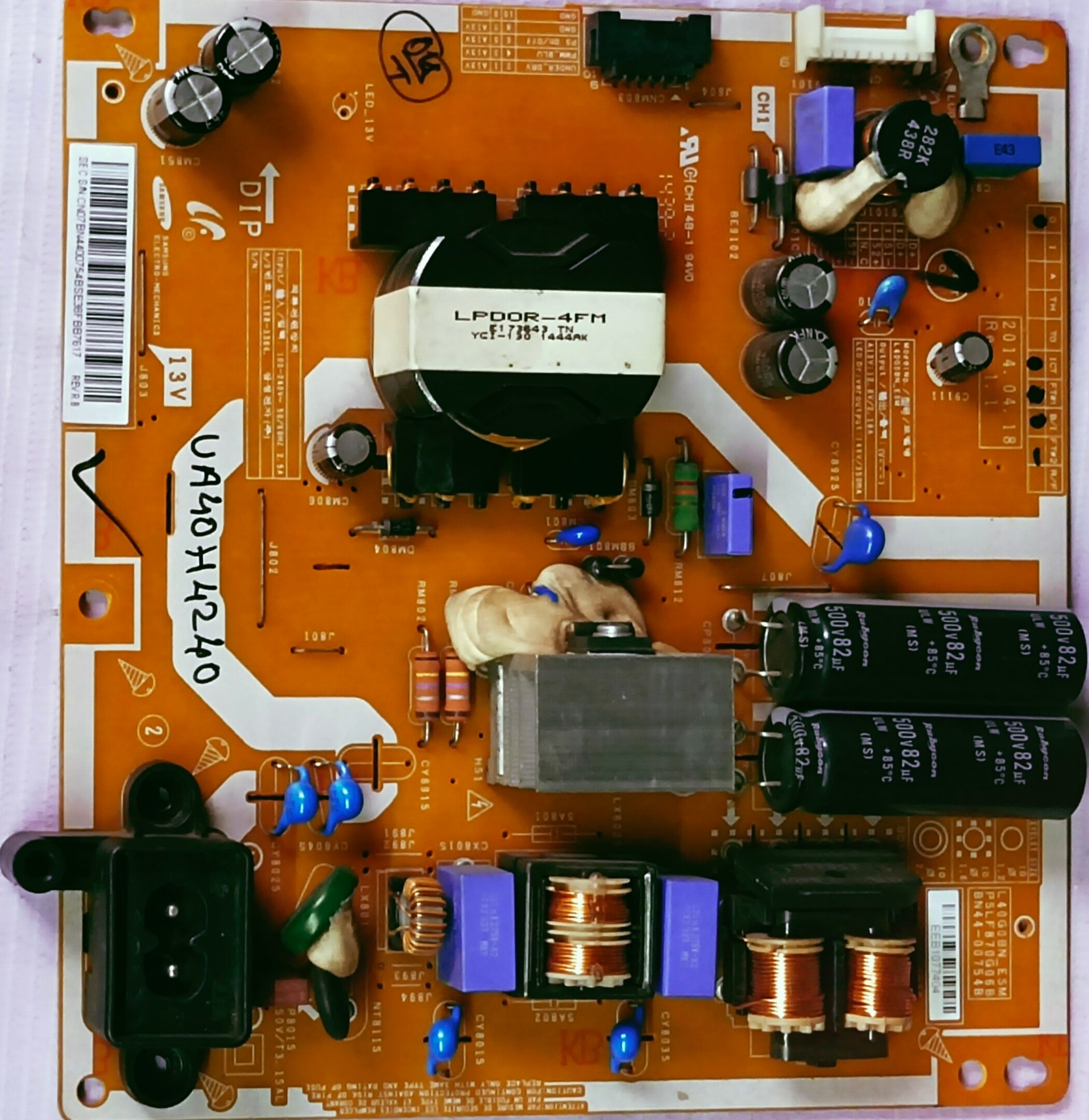 SAMSUNG POWER SUPPLY BOARD MODEL NUMBER UA40H4240 The image displays a power supply board for Samsung LED TVs, specifically identified as compatible with models like UA40H4200AR and UA40H4240AR, and bearing the part number BN44-00754B (or similar variations like BN44-00754A). Here's some information for shopping: Compatibility: This power supply board is suitable for various Samsung LED TV models, including UA40H4200AR, UA40H4240AR, UN40H4200AG, UN40H5100AG, UN40H5103AG, and UN40H4203AG. Originality: Look for sellers guaranteeing 100% original parts to ensure compatibility and proper functionality with your Samsung TV. Warranty & Returns: Be aware that some sellers may offer limited or no warranty/replacement options for these boards, especially if incorrect installation leads to damage. Pricing: Prices can vary depending on the seller and whether the board is new or used. Installation: It's recommended to consult with a qualified technician to ensure correct installation and avoid damage to the board or your TV.