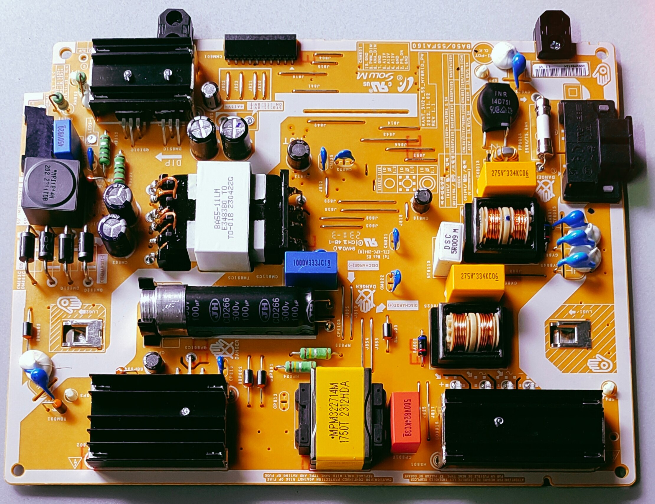 SAMSUNG POWER SUPPLY BOARD MODEL NUMBER UA50AU7700 The image displays a Samsung power supply board with the model number BA50/55FA160. This board is compatible with various Samsung LED TV models, including the UA50AU7700, and serves as the Switched-Mode Power Supply (SMPS). Details of the BA50/55FA160 Power Supply Board: Model Compatibility: This specific power supply board is designed to work with Samsung LED TV models such as the UA50AU7700, and potentially others like the UA55AU7700KLXL and UA55AUE70AKLXL, as indicated by the "BA50/55FA160" designation. Function: As an SMPS board, its primary function is to convert the incoming AC power from the mains into regulated DC voltages required to power various components within the television, including the main board, LED backlights, and other internal circuitry. Identification: The board in the image clearly shows the "BA50/55FA160" part number, which is crucial for identifying the correct replacement part if needed.