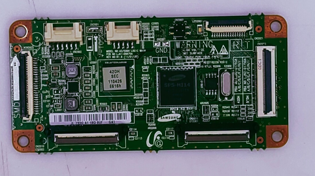Samsung plazma Logic Model No. PS43D450 A2 part No. JL 793G A1 180 OUF- GA1 Digital Electronics Services pune maharashtra (All India (COD) Cash on Delivery Service Available This is a Samsung PDP TV Logic Main Board, specifically identified by the part number LJ41-09475A. Technical Specifications Manufacturer: Samsung Board Type: Logic Control Board (T-Con/Logic Main) PCB Number: LJ41-09475A Revision: 1.6 Panel Type: Typically used in Plasma (PDP) displays, such as 42-inch or 43-inch models. Compatibility and Common Features Compatible Brands: Samsung, Insignia, RCA Related Part Numbers: Often found in conjunction with board numbers LJ92-01793A and LJ92-01750A. Function: This board manages the signals sent to the plasma display panel to produce an image. Issues with this board can cause symptoms like vertical lines or faded colors.