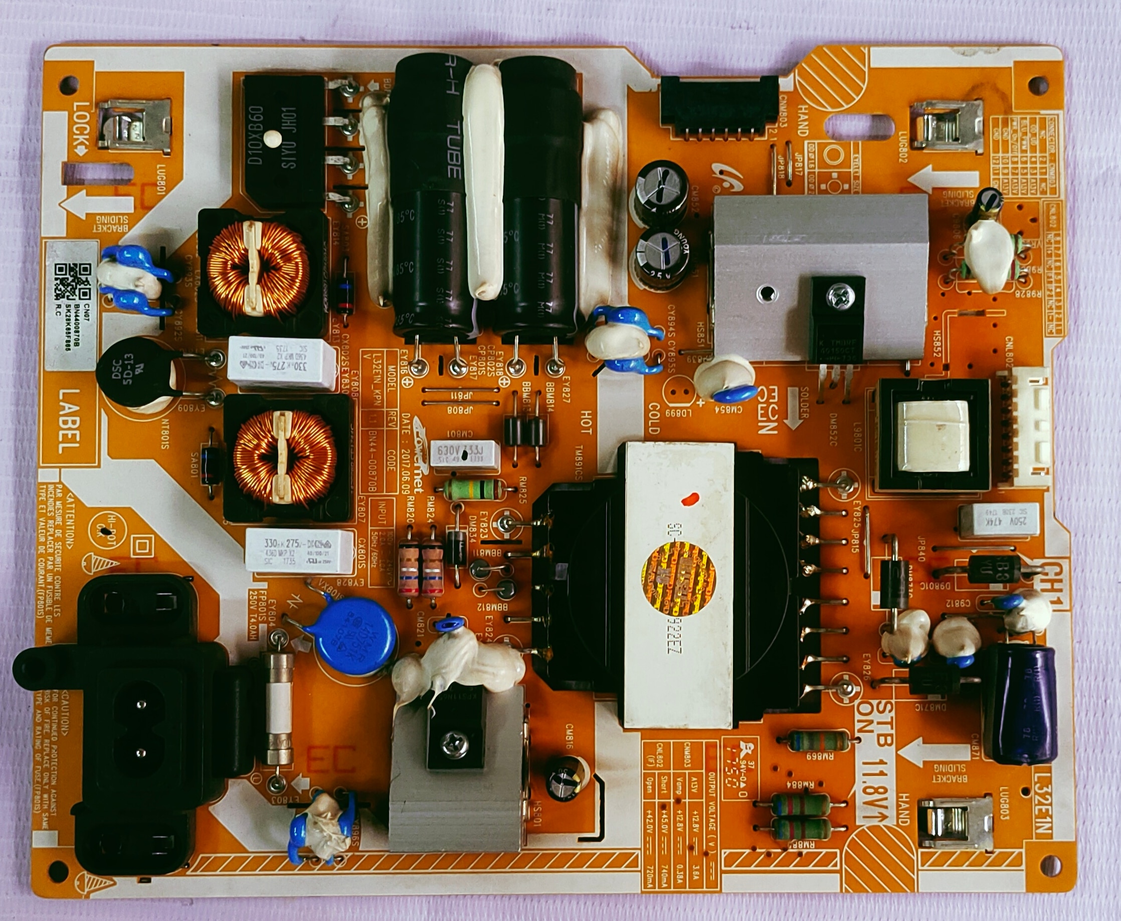 Samsung power supply model number UA32K5300 The Samsung UA32K5300's power supply board, also known as the SMPS (Switching Mode Power Supply) or PSU (Power Supply Unit), is a crucial component that converts AC power from the wall outlet to the DC power required by the TV's internal circuitry. It's typically a single-layered board with specific input and output voltages. Here's a more detailed breakdown: Key Features and Functions: Power Conversion: The primary function is to convert the household AC power (typically 240V) into lower DC voltages (like 9V or 12V) needed by the TV's various components. Voltage Regulation: The board regulates the DC voltage to ensure it's stable and within the required range for proper TV operation. Protection: The power supply board often includes protective circuitry to safeguard the TV from overvoltage, undervoltage, overcurrent, and other potential issues. Compatibility: It's designed to be compatible with specific Samsung LED TV models, like the UA32K5300. SMPS (Switching Mode Power Supply): The power supply board uses a switching mode technology to efficiently convert the AC power, making it smaller and more efficient than older linear power supplies. Common Issues and Troubleshooting: TV Not Powering On: If the TV doesn't turn on at all, a faulty power supply board could be the cause. Intermittent Power: If the TV powers on and then off intermittently, the power supply may be struggling to provide stable power. Visual Issues: A malfunctioning power supply can also affect the display (e.g., flickering, dark screen). Troubleshooting: If you suspect the power supply is faulty, you can try unplugging the TV, checking the power cord, and testing with a different power outlet. Replacement: If you need to replace the power supply board, it's essential to ensure you get a compatible board for your specific TV model (UA32K5300). You can find replacement boards from electronics retailers or