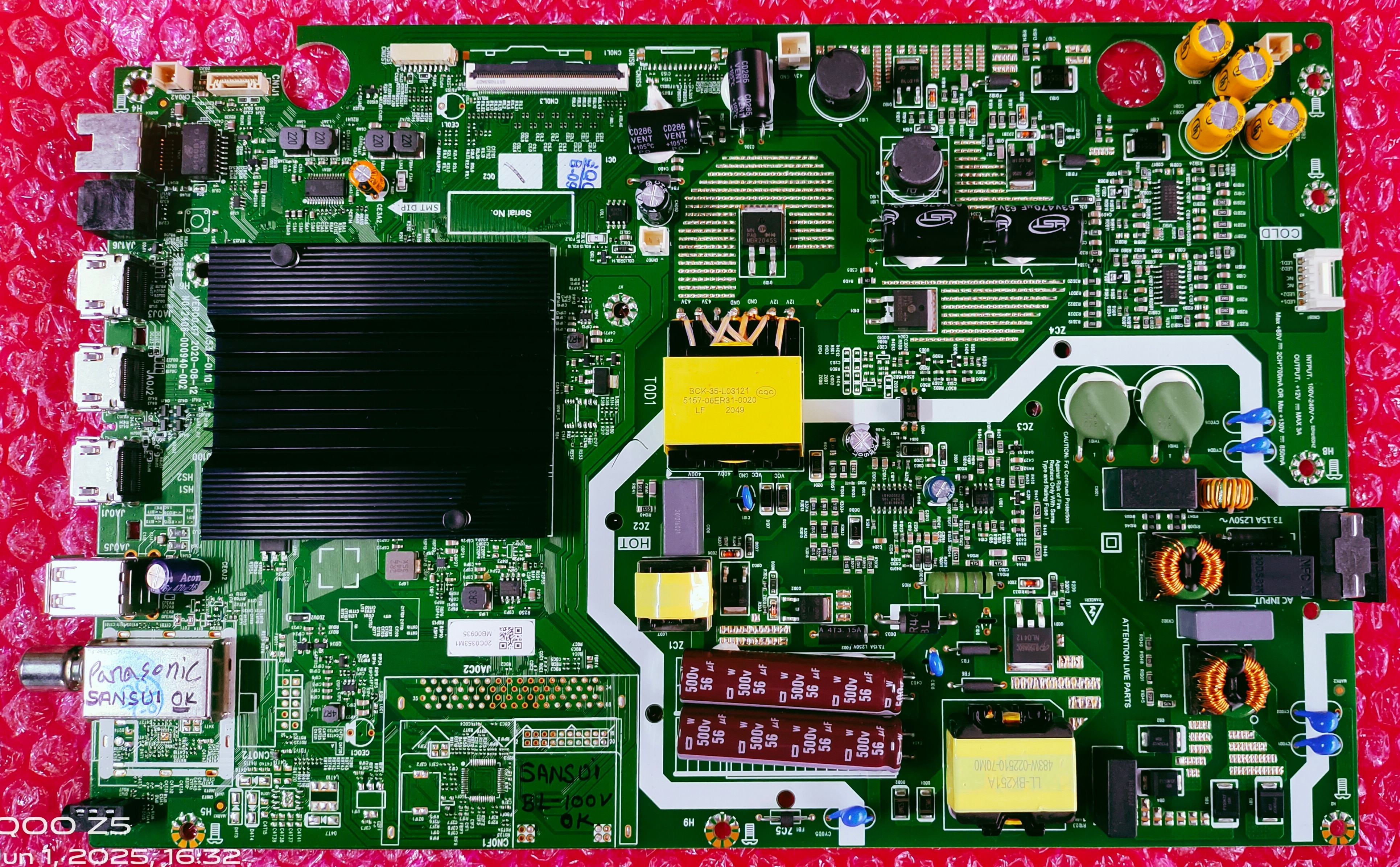 NEW SANSUI BOARD MODEL NUMBER JSW55ASUHD The main board for the Sansui JSW55ASUHD is a 55-inch Ultra HD (4K) LED TV. It is a smart TV with a 3840x2160 pixel resolution and a 60 Hz refresh rate. The TV features Android OS, 2 GB RAM, and 8 GB internal storage. It also has a CA53 Quad Core Graphics processor. The main board controls various functions of the TV, including video processing, audio processing, and operating system functionality.