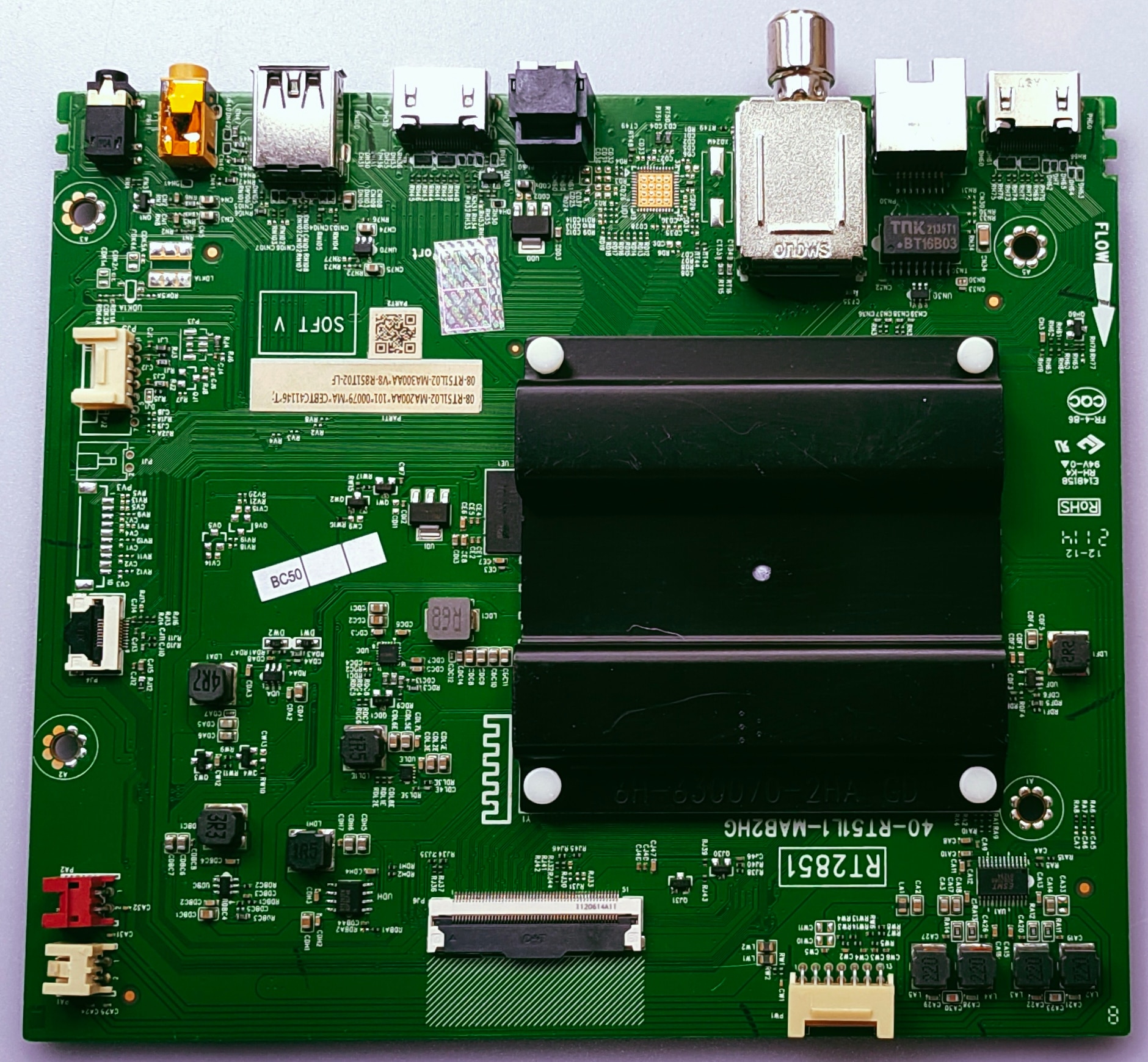 TCL 4K ANDROID MOTHER BOARD MODEL NUMBER 43L8B BOARD NUMBER RT2851 40-RT51L1-MAB2HG The 43P8B is a 43-inch TCL LED Smart Android TV with Ultra HD (4K) resolution and a 60Hz refresh rate. Key components for this model include the TCL T-Con Board and TCL Motherboard (Main Board) for repairs and replacements, ensuring original picture quality and functionality. The TV also features built-in Wi-Fi for accessing streaming platforms, HDMI and USB ports for connectivity, and comes with a remote, stand, and wall mount in the box. Main Features and Specifications Brand:TCL Model:43P8B Display:43-inch LED, Ultra HD (4K) Refresh Rate:60Hz Smart Features:Android TV with built-in Wi-Fi for streaming apps Connectivity:HDMI, USB ports Power:AC 100 - 240 V, 50/60 Hz Key Components T-Con Board:This is a genuine TCL T-con (Timing Control) board specifically for the 43P8B model, designed to maintain original picture quality. Motherboard (Main Board):The main control board of the TV, this part runs the operating system and other smart functions. What's Included 1 TV Unit Remote Controller Detachable Power Cord Table Top Stand Wall Mount Bracket 2 AAA Batteries