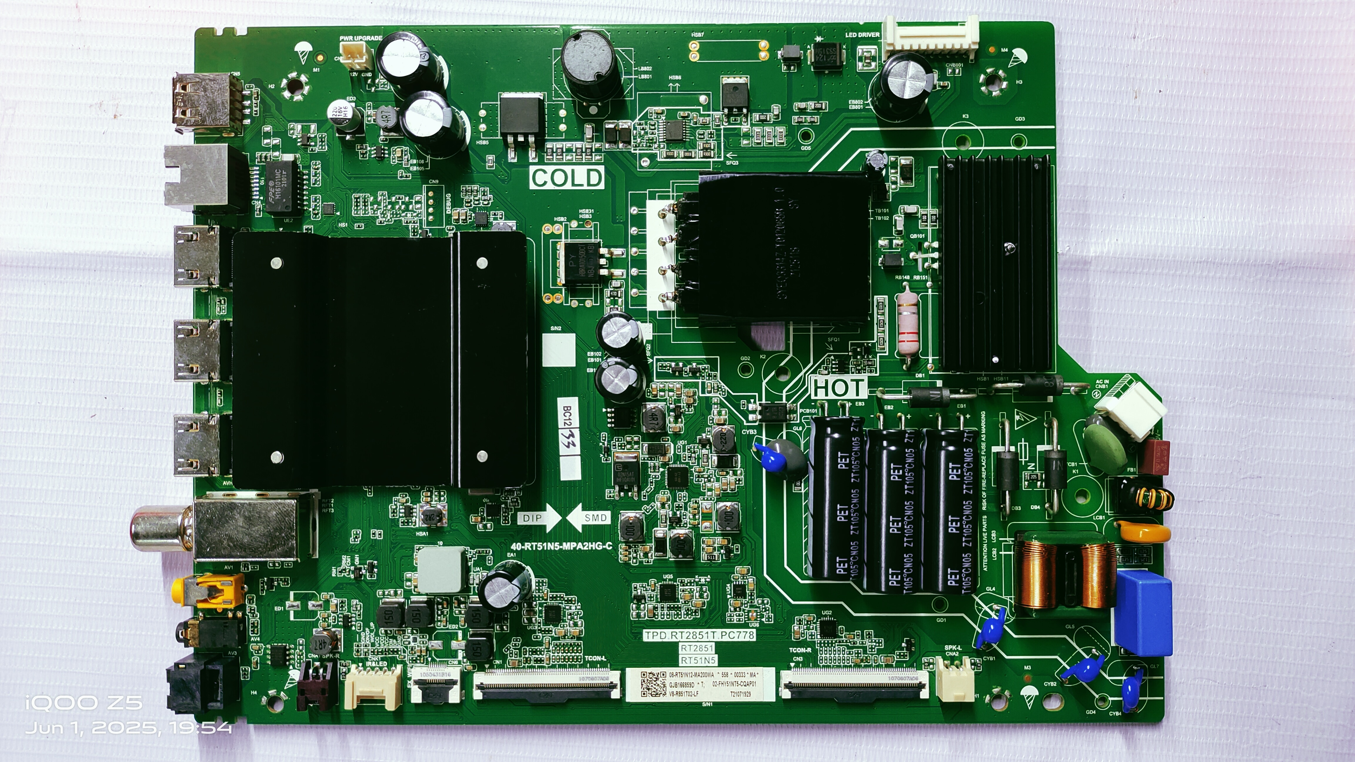 The TCL TPD.RT2851T.PB778 main board is a motherboard used in various TCL LED TVs, including models like RT2851T, 55P615, and 43P615. It is a key component responsible for processing video and audio signals, controlling the TV's features, and managing the interface with the user.