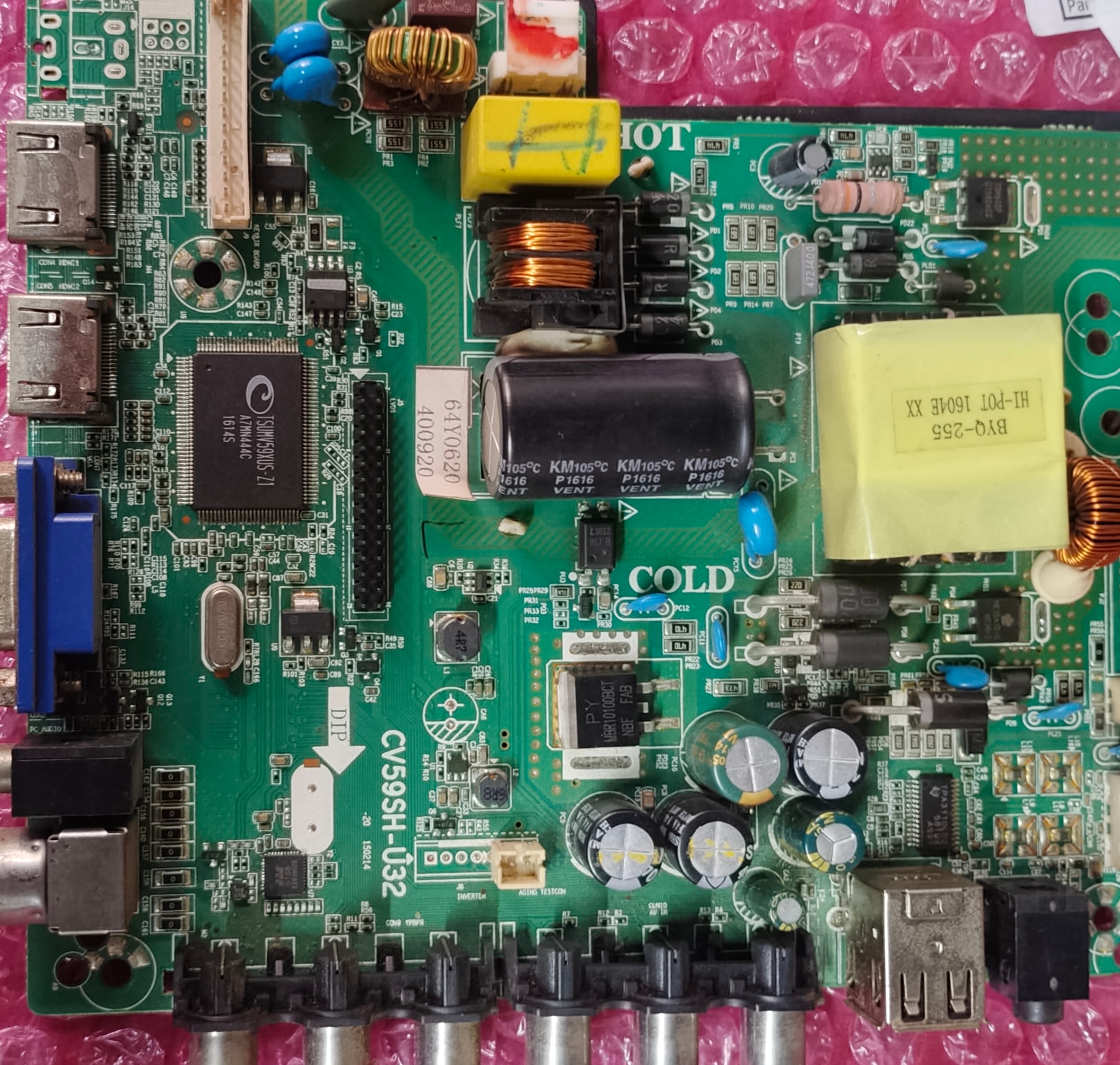 Universal LED CV59SH-U32 is a TV motherboard, specifically designed for China-made LED TVs. It's a three-in-one board, meaning it integrates multiple functions onto a single PCB. This particular model is known for its 1366x768 resolution, 34.8-39.6V voltage range, and 540mA current draw.