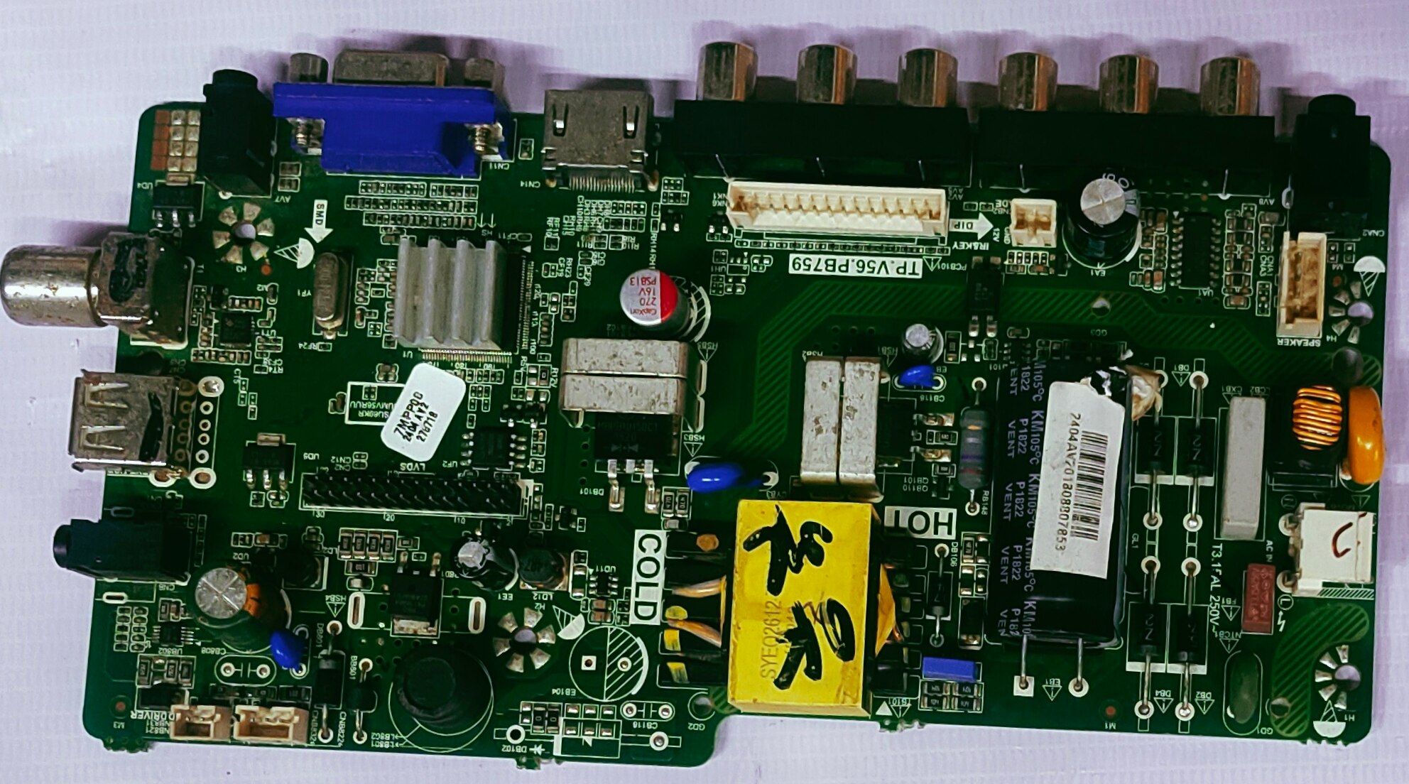 The mainboard is a crucial component that manages various functions of the TV, including video processing, audio output, and input signal handling. The "tp.v56.pb759" designation likely indicates a specific model or version of this mainboard.