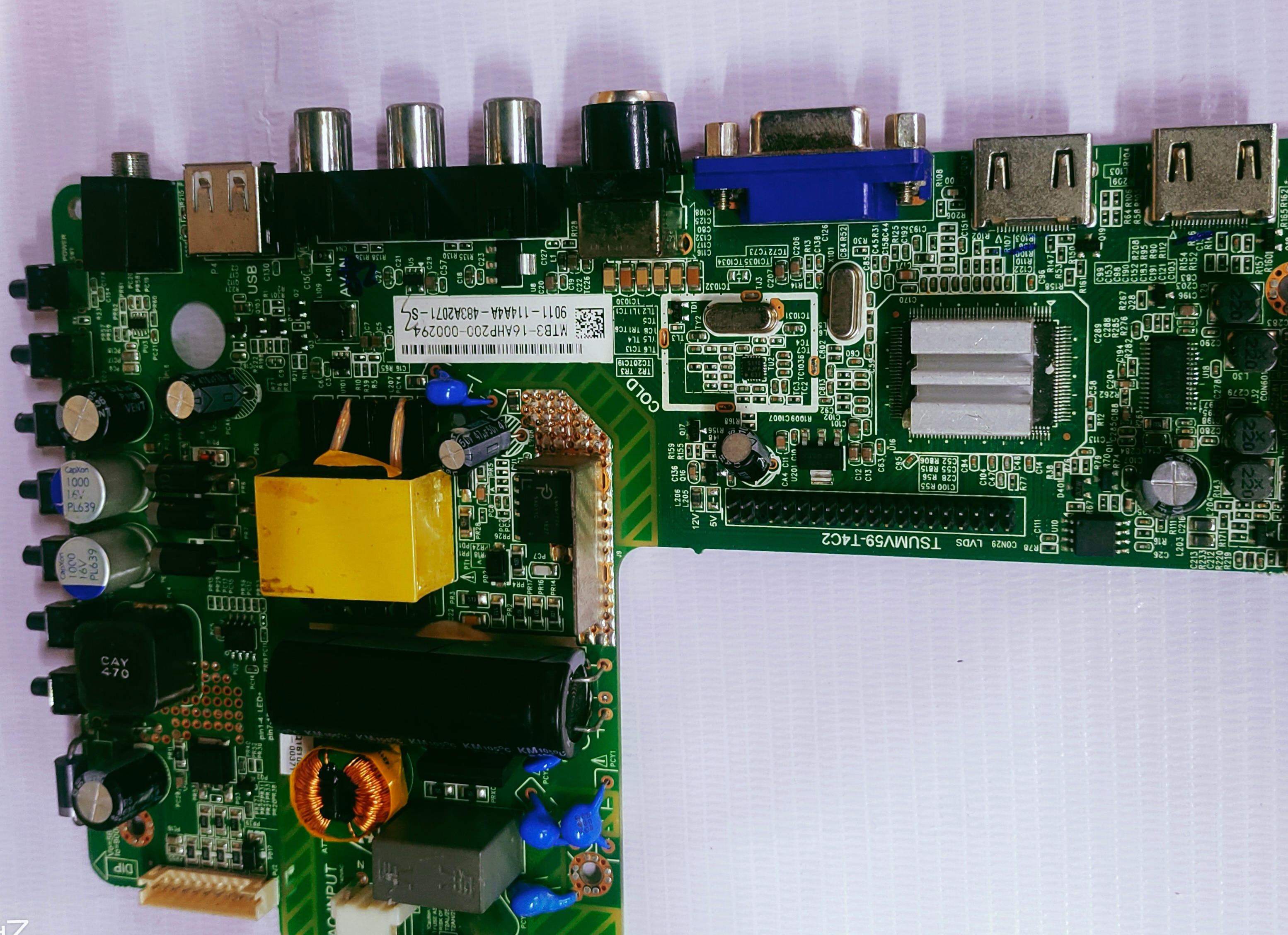 The TSUMV59-T4C2 is a mainboard, likely for a television, specifically a 24PHA4100S/67 model, according to documentation found on Scribd. It supports various inputs like VGA, YPBPR, and HDMI. The board also features functionalities like auto volume leveling and supports picture playback of JPEG, BMP, and PNG files. The documentation details aspects like cable connections, panel removal, and software update procedures.