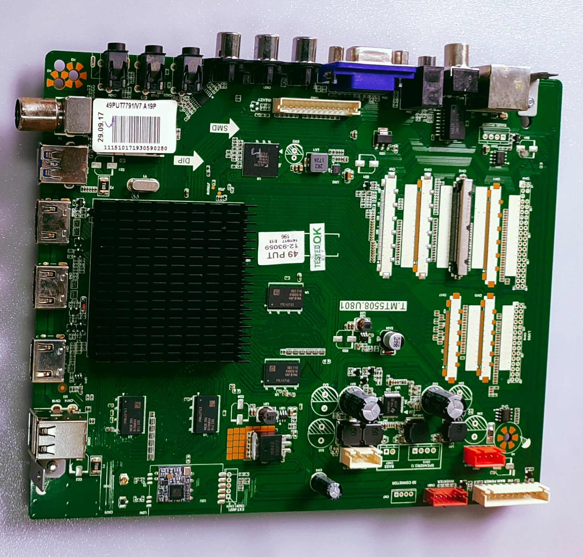 VIDEOCON 4K ANDROID MOTHER BOARD MODEL NUMBER UHDTVVNB43Q519SA The UHDTVVNB43Q519SA is a Videocon LED TV main board, specifically designed for the 43-inch 4K UHD TV model. It acts as the central processing unit, managing video and audio signals, input/output ports, and overall TV functions. The board features 3 HDMI ports, 1 composite input, and 3 USB ports. It also includes an MHL enabled port and a VGA input. Here's a more detailed breakdown: Function: The main board is the core component that controls the TV's operations, including video processing, audio output, input selection, and overall system management. Compatibility: This specific main board is designed for the Videocon UHDTVVNB43Q519SA model. Ports: The board includes 3 HDMI ports, 1 composite input with accompanying audio, and 3 USB ports. Additional features: It also features an MHL enabled port and a VGA input. SMPS: While the main board handles the core TV functions, it's also powered by a separate SMPS (Switch Mode Power Supply) board that converts AC power to the DC power needed by the main board and other components. Testing: Reputable suppliers will test the main board under simulated TV conditions to ensure functionality. Warranty: Some suppliers offer warranties on the main board, often with a 30-day replacement policy.